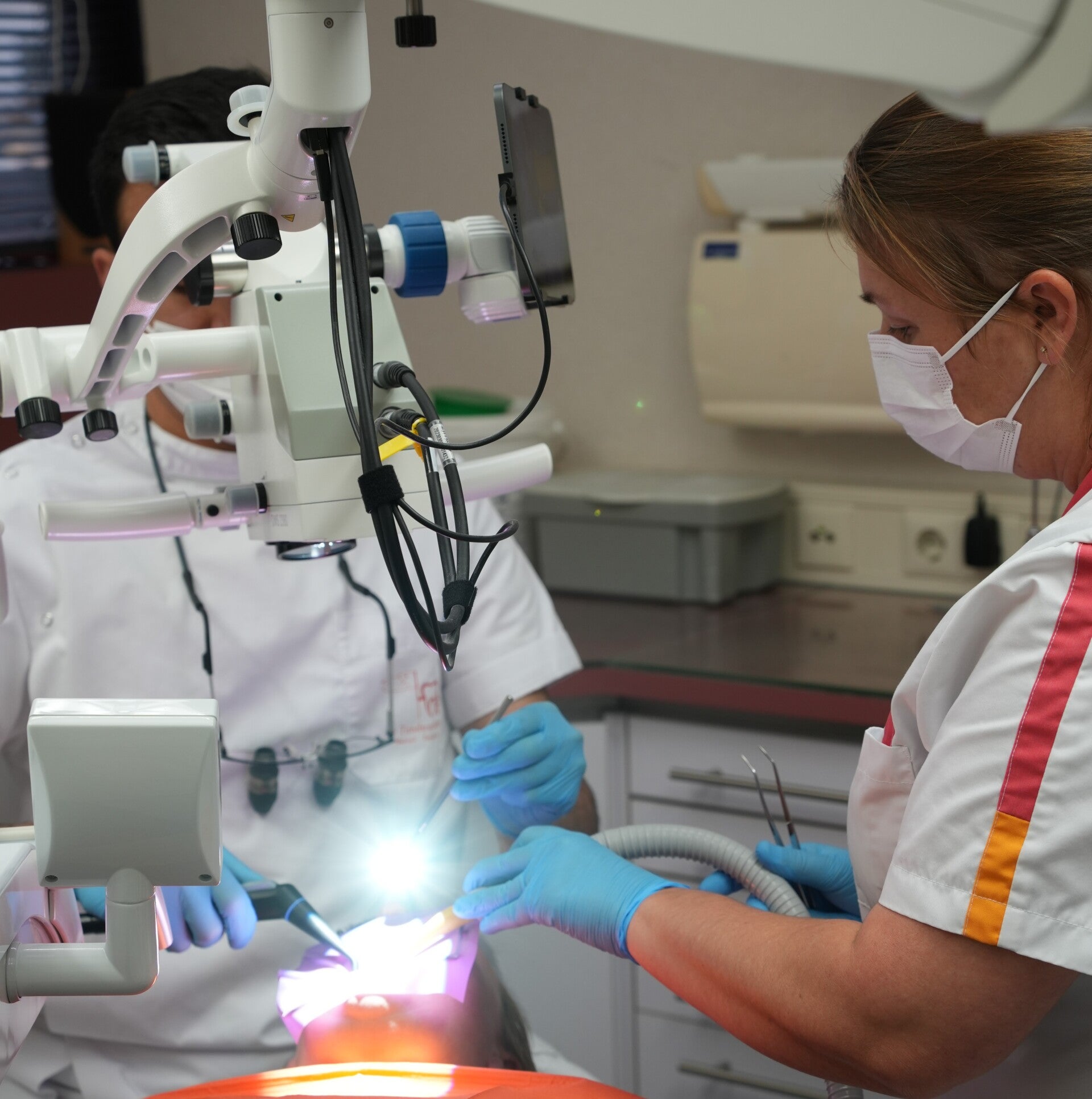 Onze praktijk is gespecialiseerd in biomimetische restauratieve tandheelkunde en orthodontie, naast algemene tandheelkunde. We werken met moderne apparatuur, waaronder een operatiemicroscoop voor veel behandelingen – dit zorgt voor optimale kwaliteit én een ergonomische werkhouding voor zowel tandarts als assistent.